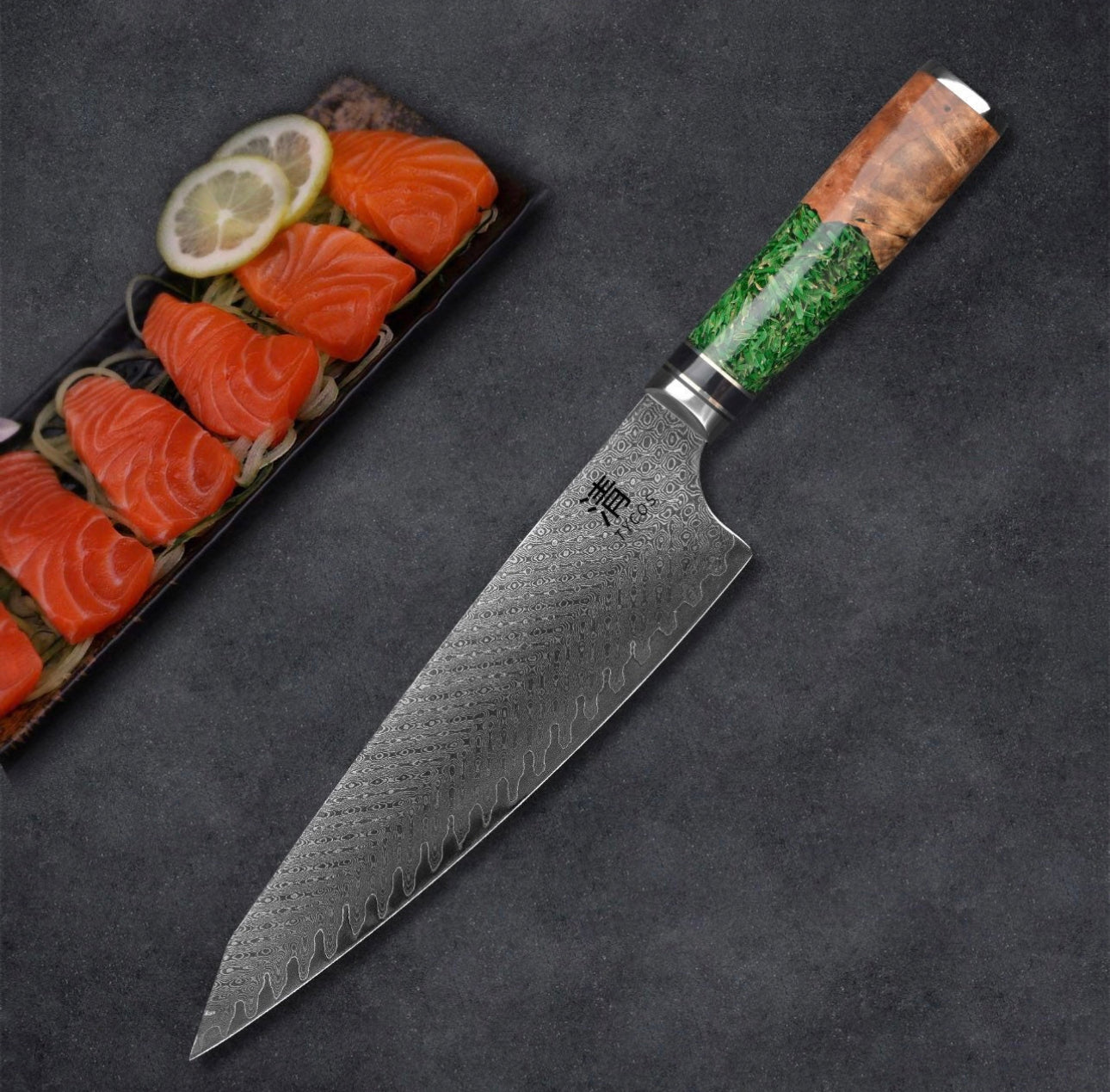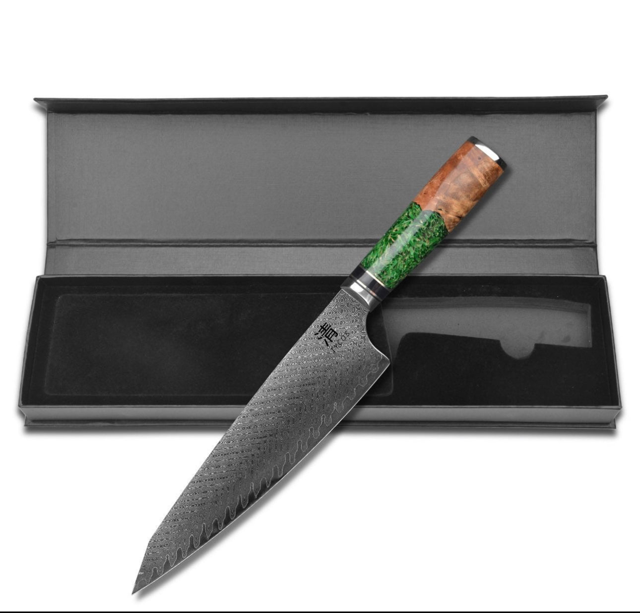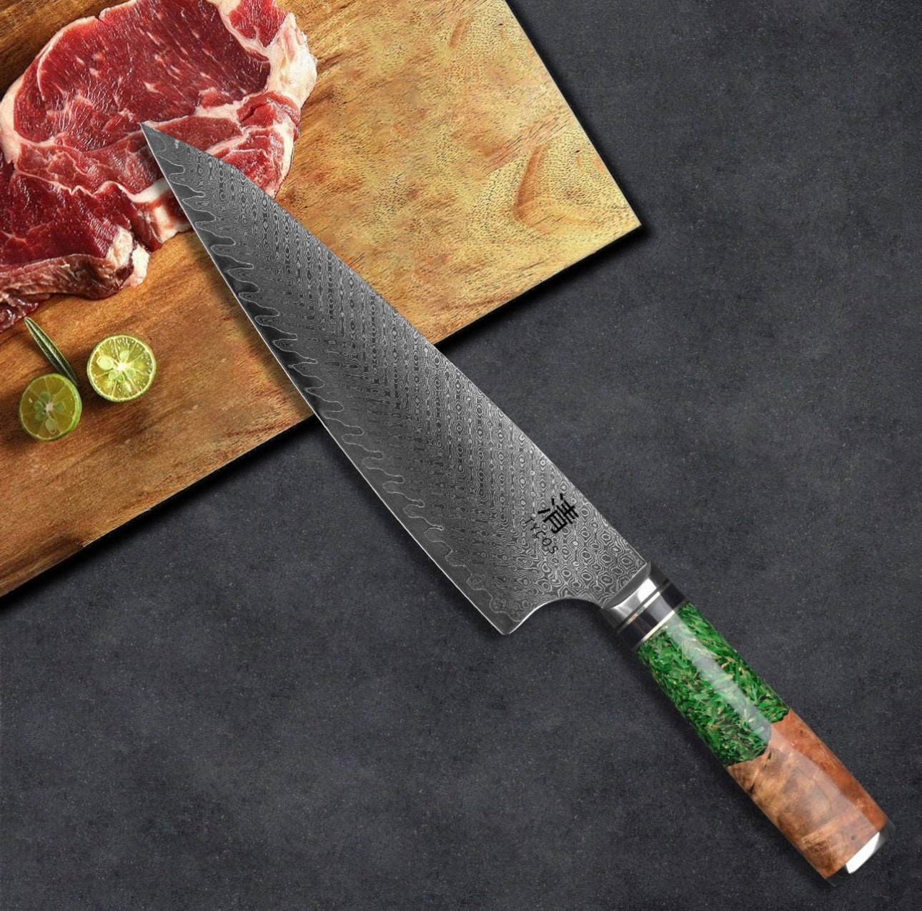 8” Damascus Gyuto Chef Knife With Resin Handle