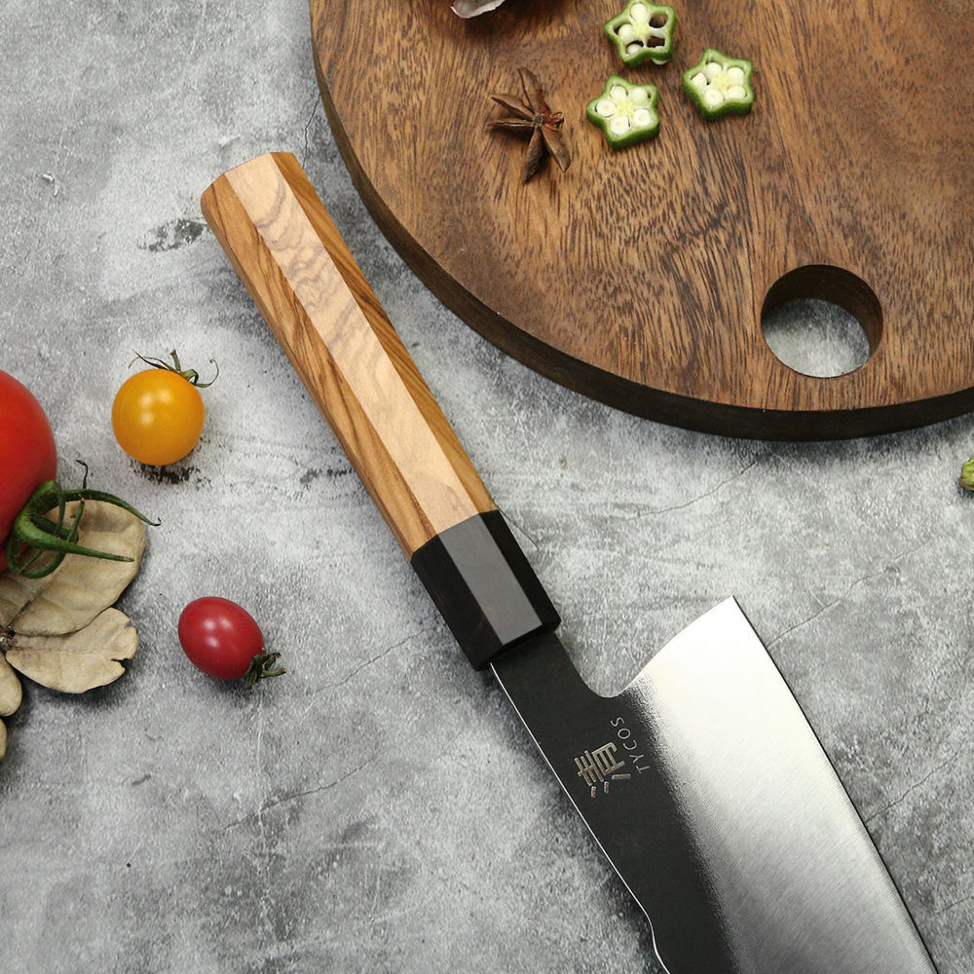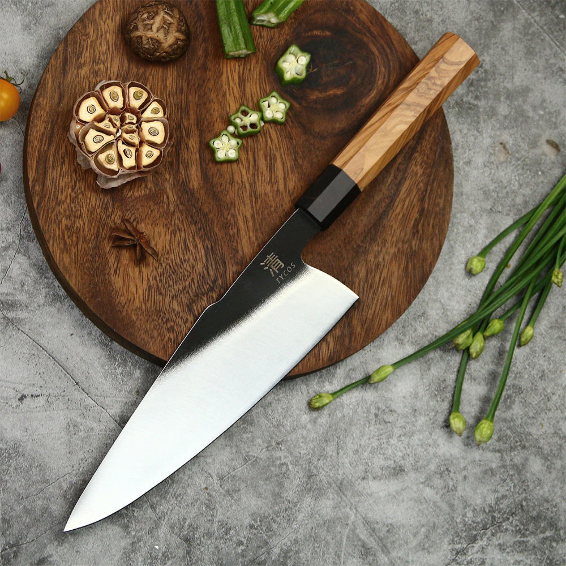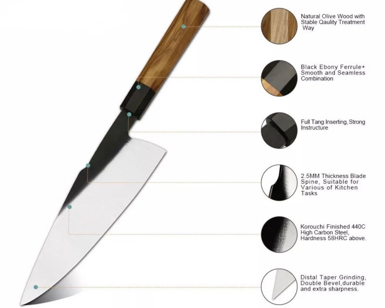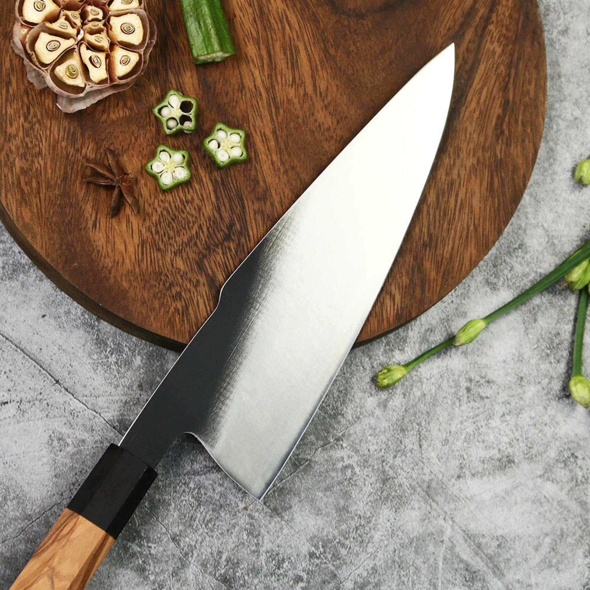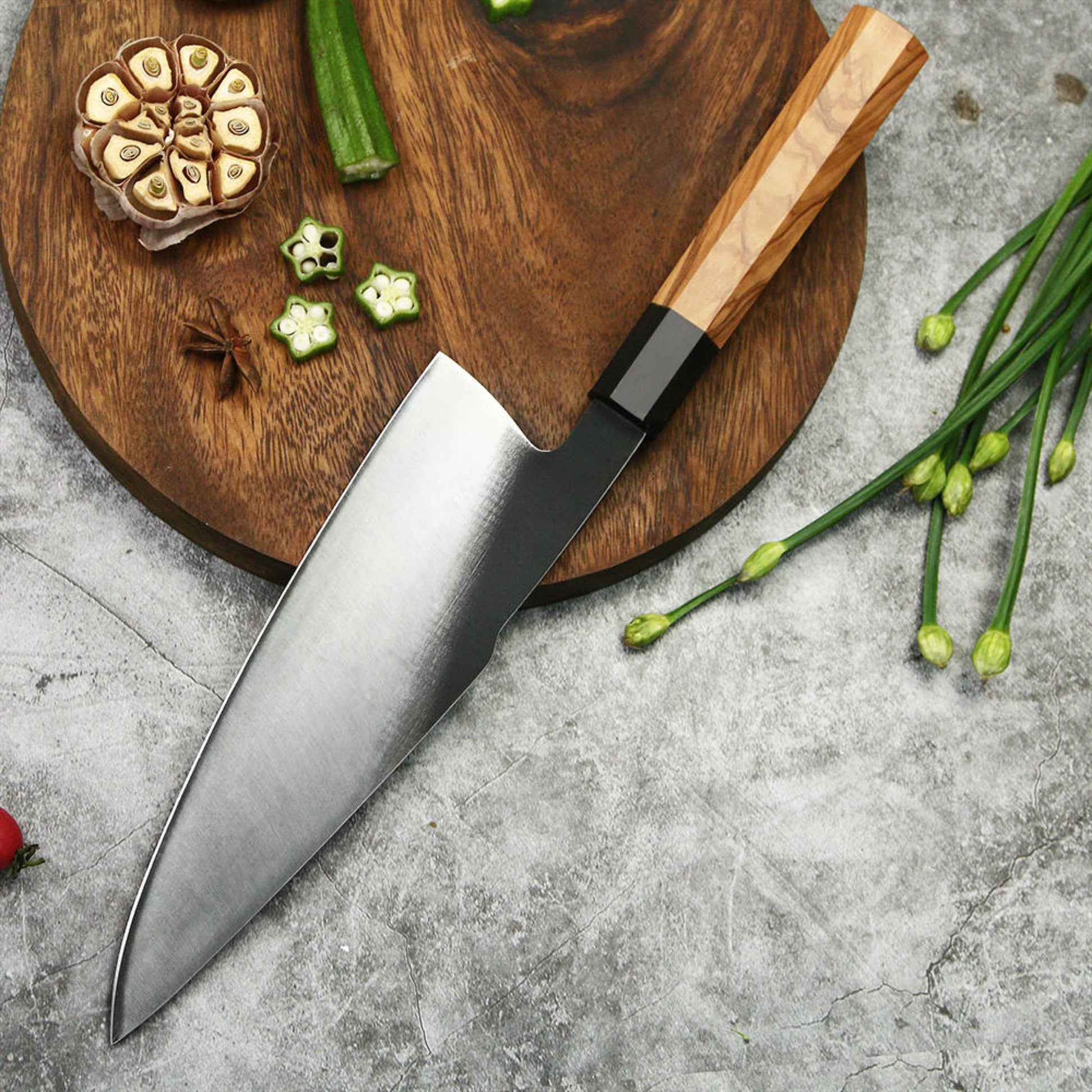 Japanese 8 Inch Gyuto Chef’s Knife 440C Steel Cooking Kitchen Cutlery Olive Wooden Handle