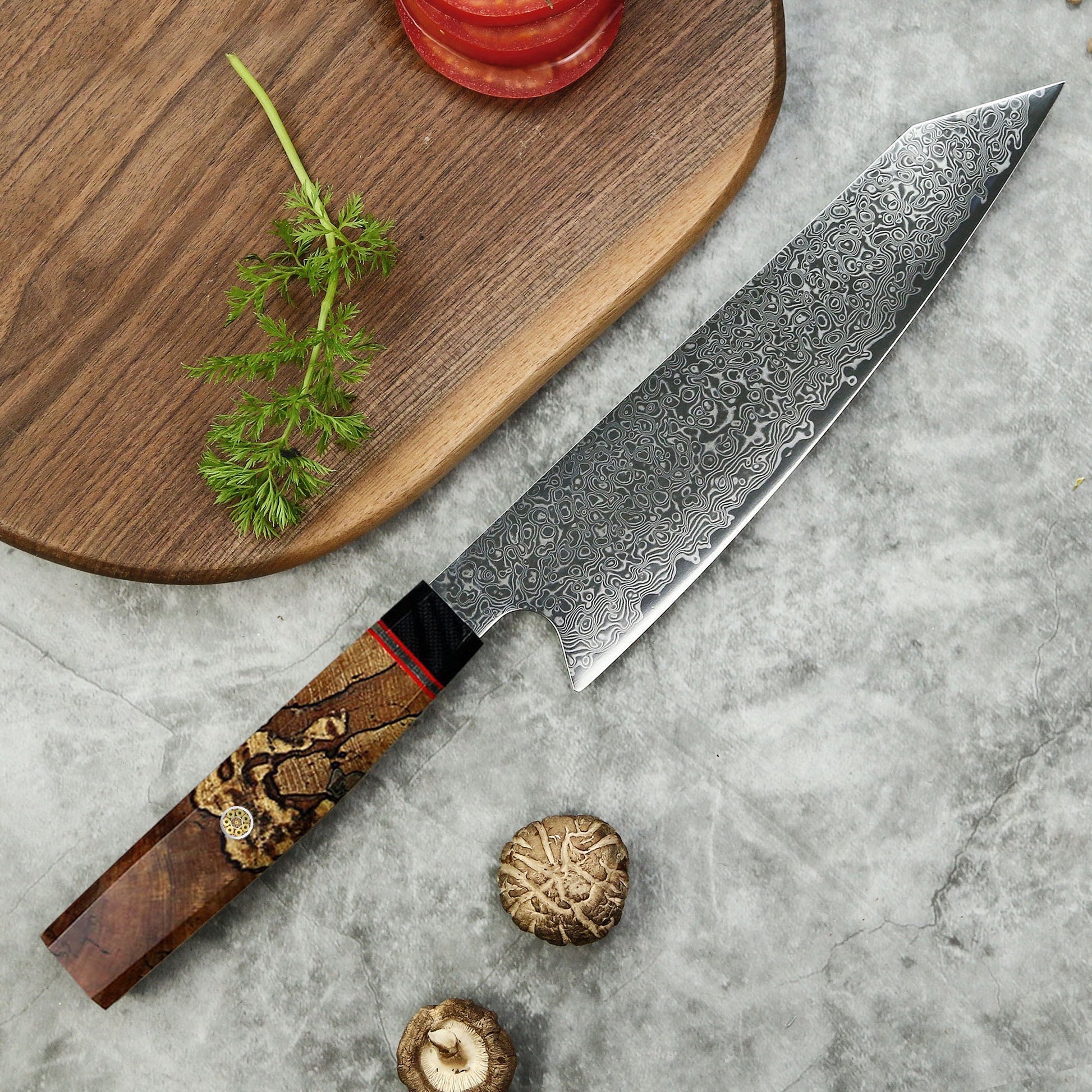 • Premium VG-10 Damascus Steel: Renowned for its superior edge retention and sharpness.