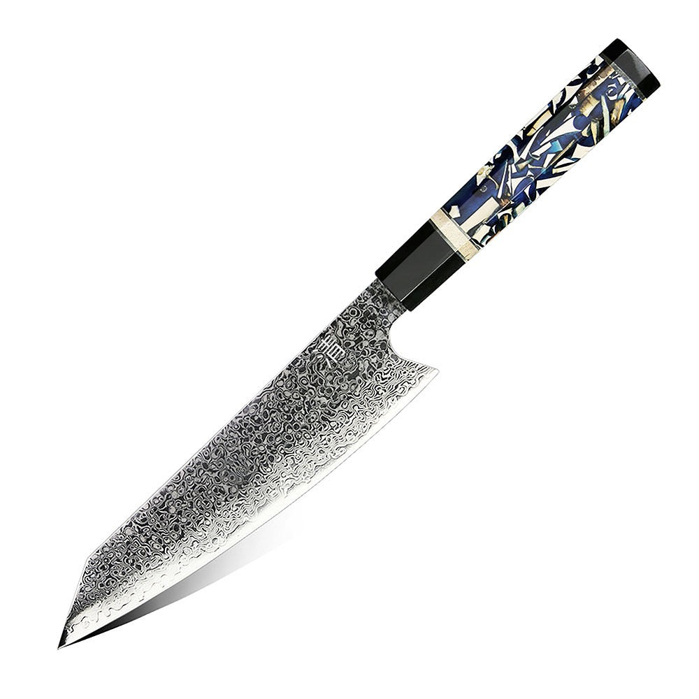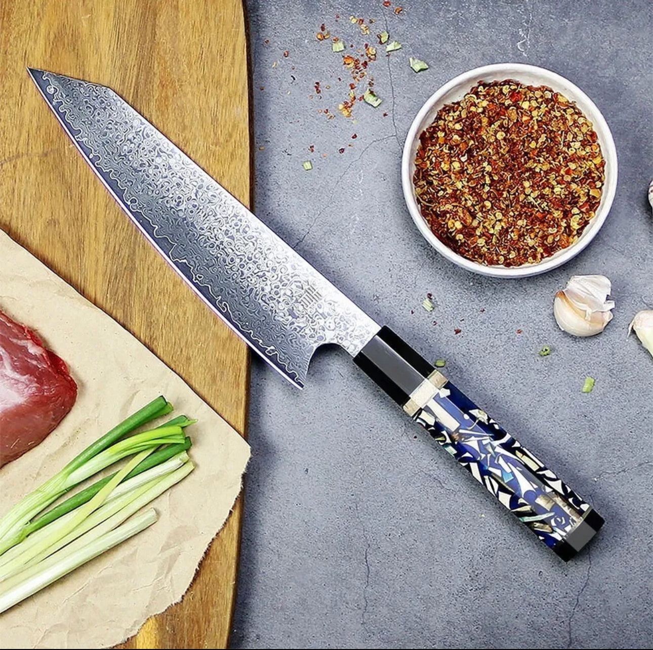 8” Kiritsuke Damascus Chef Knife With Unique Wooden Handle