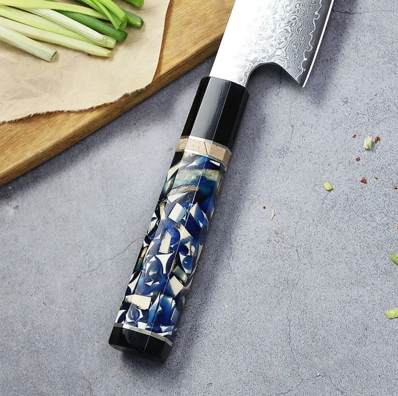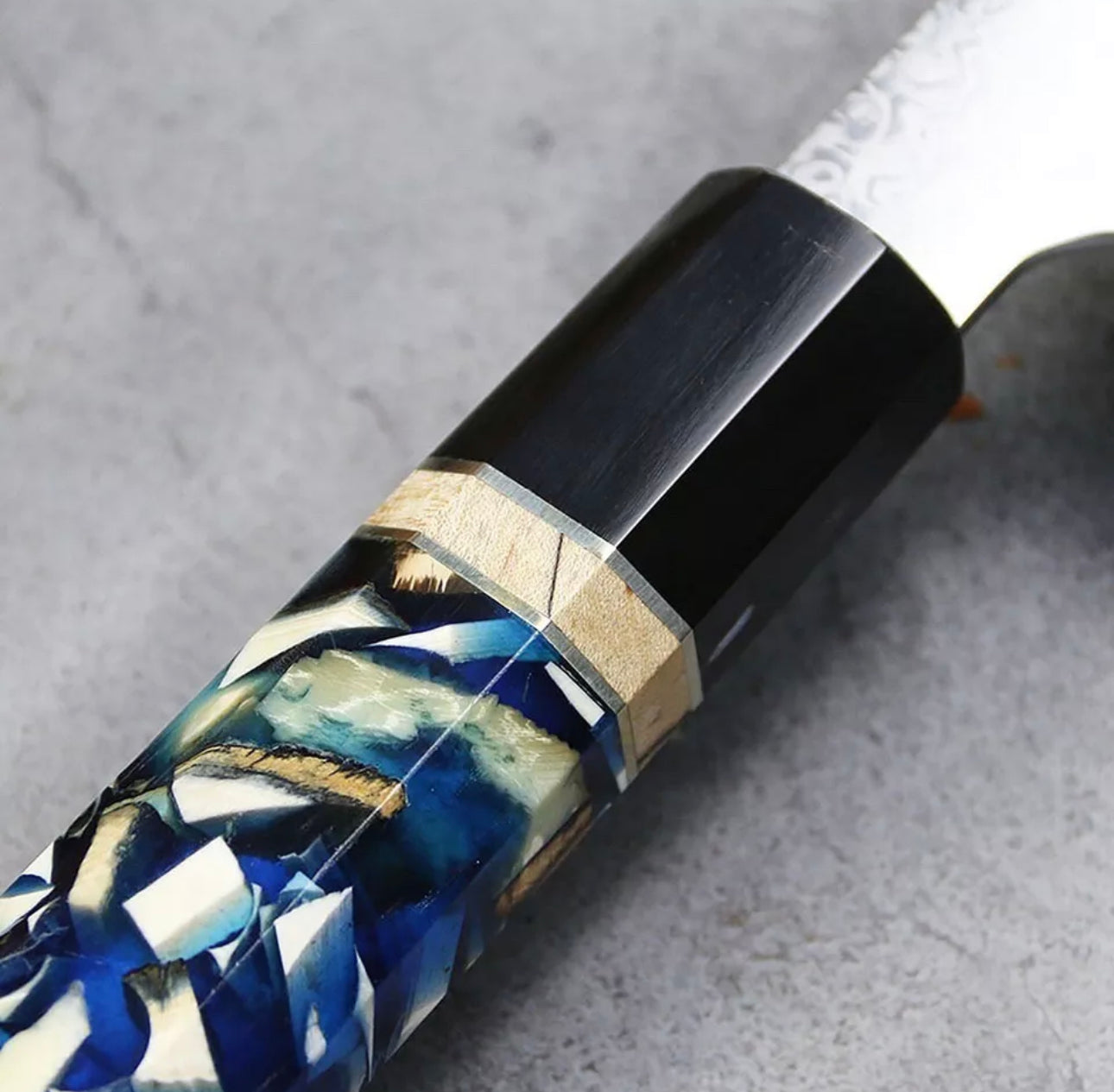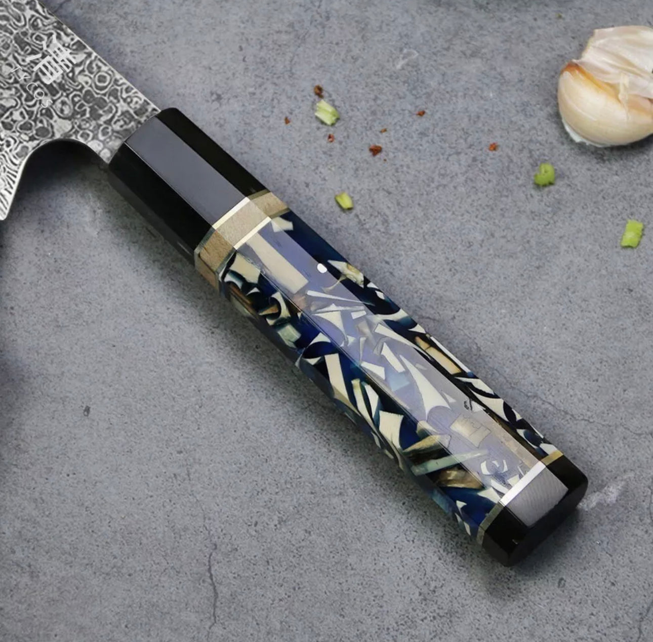 • Premium VG-10 Damascus Steel: Renowned for its superior edge retention and sharpness.